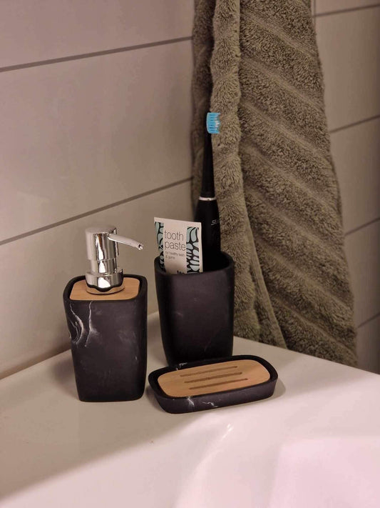 Baderomssett - lekkert 4 deler sett i gråVanlig pris 459,00 krVanlig prisEnhetspris per459,00 krSalgspris 459,00 kr