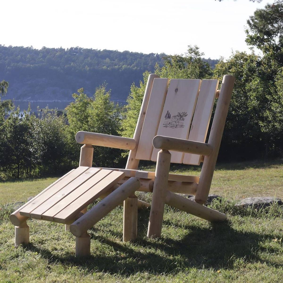 En vakker villmarksstol som passer perfekt for hytter på fjellet eller i skogen. Stolen kommer delvis montert i nydelig hvit sedertre fra Canada. Tresorten er svært værresistent og derfor perfekt for det tøffe klimaet i Norge. Rammeverket er i solid rundstokk som forsikrer en robust og solid sitteopplevelse.