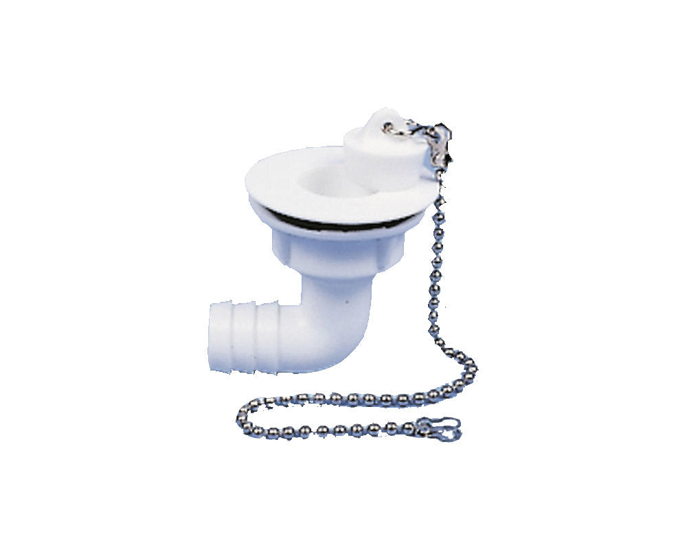 Avløp u/vannlås L Ø30mm rør 19mm m/propp hvit
