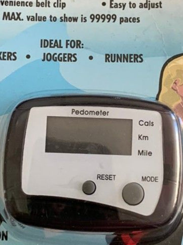 Denne skritt telleren kan også tillegg til å telle skritt, regne ut distanse og antall forbrente kalorier. Displayet viser skritt, distanse og kalorier.