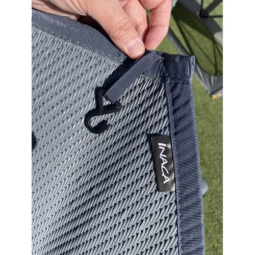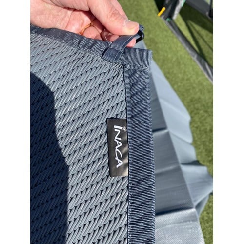Formsydd matte som passer Inaca Pop-Up telt Ø 350 cm. Mørkegrå vevet Polypropylen, kantsydd. Kvalitet: 320gr/kvm.