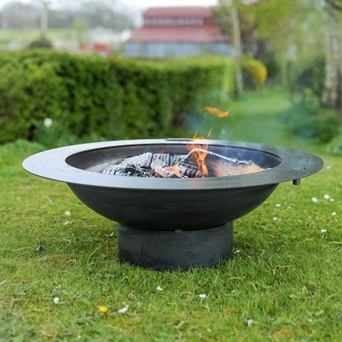 Bålfat i 3 mm kraftig stål som er håndlaget i Storbritannia. Dette er et produkt som er laget for å stå på din uteplass i mange år fremover. Designet er praktisk, pent og varmer opp til 6 mennesker. Bålfatet er 34 cm høyt og står på en 20 cm solid, rund base i stål. Det gir den god støtte og et pent utseende. Den indre diameteren er på 60 cm og ytre diameter ligger på 100 cm. Dette bålfatet vil varme deg og dine venner gjennom mange hyggelige og gode opplevelser.