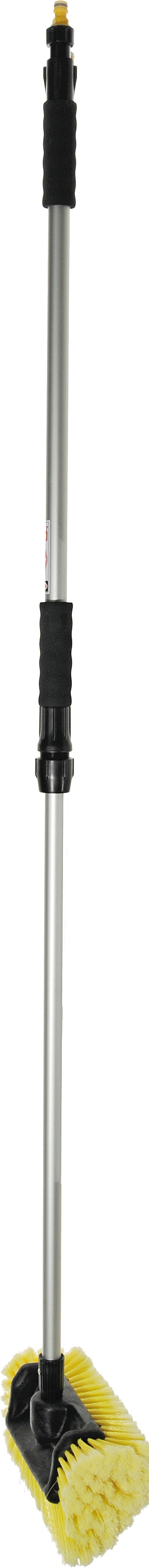 Vaskekost med teleskopisk aluminiumsstang med vanngjennomstrømning. Teleskopskaftet kan utvides fra 90-175cm. Med gardenakobling og mykt, polstret håndtak. Stort og bløtt børstehode med sidebust.