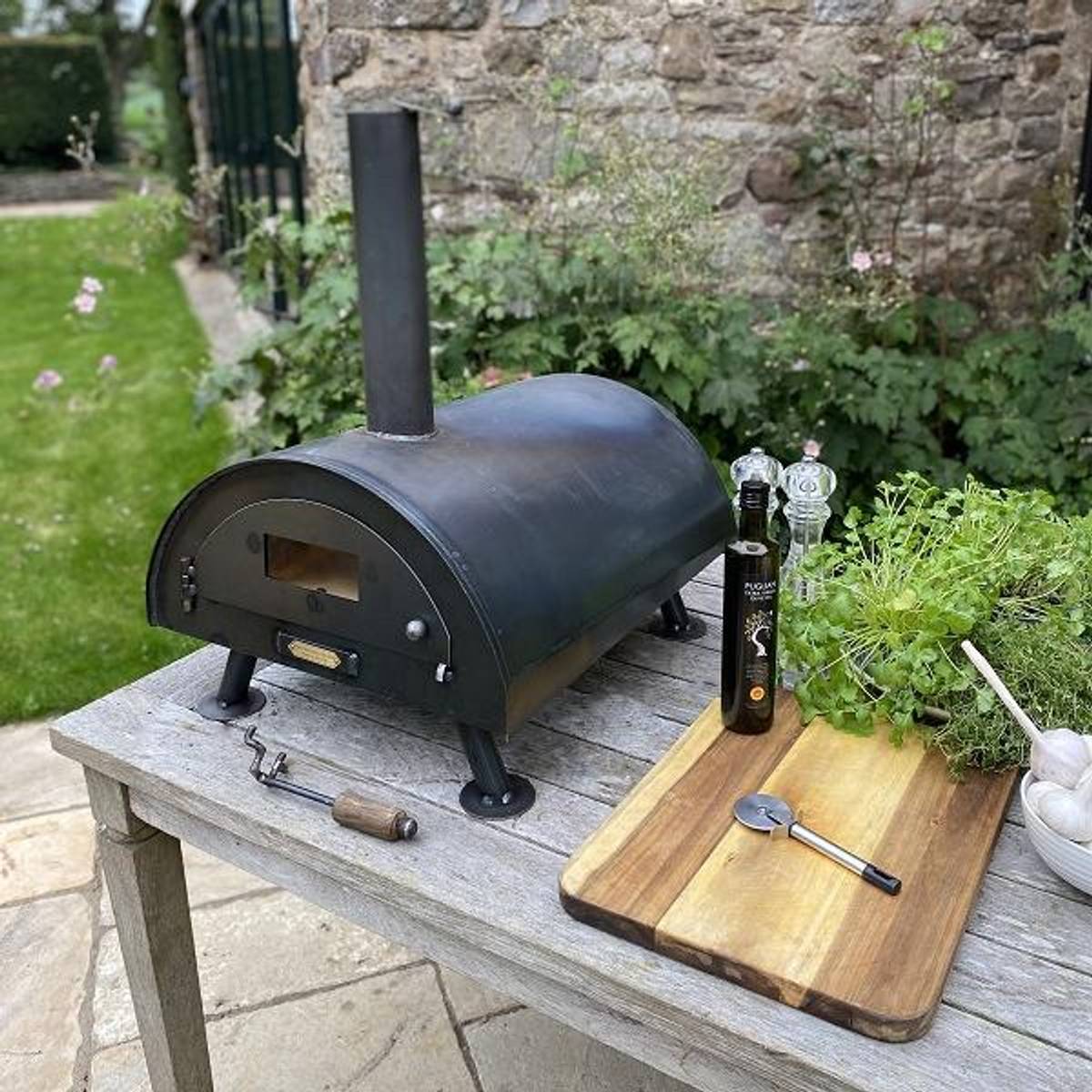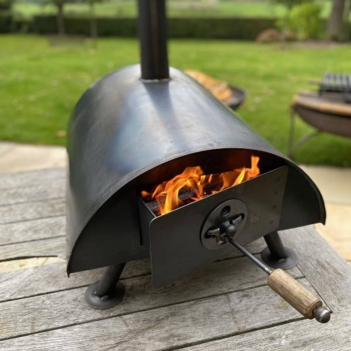 Nyt fantastisk god pizza fra en vedfyrt ovn i ditt eget hjem. Pizzaovnen er håndlaget av eksperter. Materialet er av 3 mm tykk stål og den har praktiske føtter som lar deg plassere den på bordet eller på andre trygge overflater. Ovnen har en gunstig brannboks bak, hvor du fyller ved. Ovnen er designet for å bli kjempevarm, og vil steke smeltende og sprø pizzaer på få minutter.